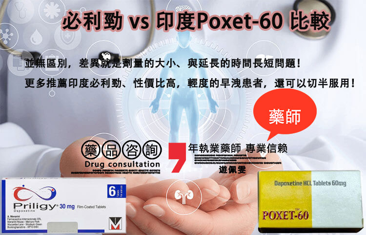 比較項目 原廠必利勁(Priligy) 印度版 Poxet-60(Sunrise)