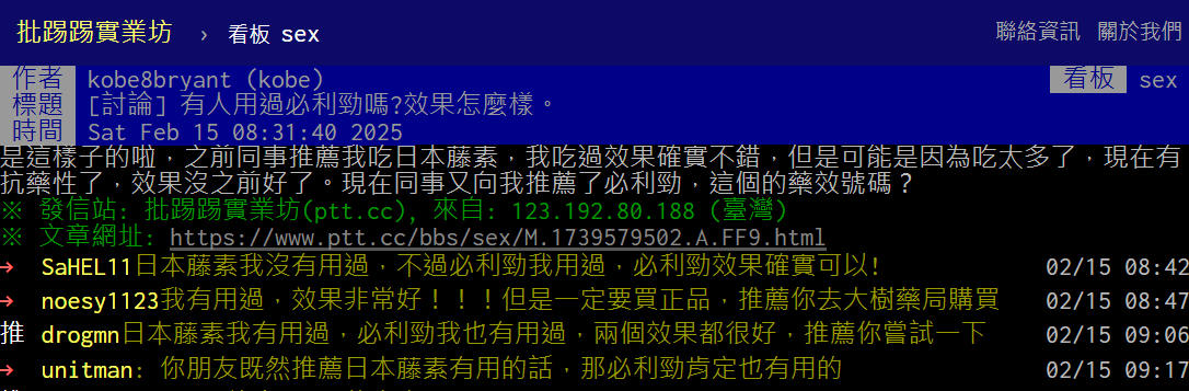 💬 必利勁 PTT 使用者分享心得