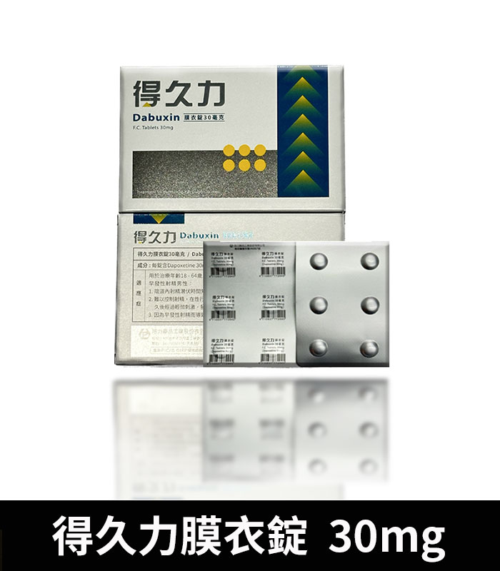 得久力膜衣錠 Dabuxin 30mg 是專為改善男性早洩(PE)問題設計的處方藥,其主要活性成分 Dapoxetine 為國際認可的延遲射精治療成分,與知名藥物必利勁成分相同。每顆 30mg 的劑量能夠幫助男性有效延長性愛時間,提升性生活質量與自信心。該藥物可減少射精過快帶來的心理壓力,讓您重拾性生活的控制感。經過多項臨床試驗證實,得久力膜衣錠不僅效果顯著,而且副作用較輕微,適合絕大多數健康男性使用。