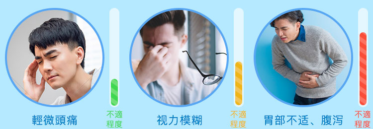 | 頭痛/頭暈 | 5% | 補充水分+平躺靜養,避免強光刺激 |