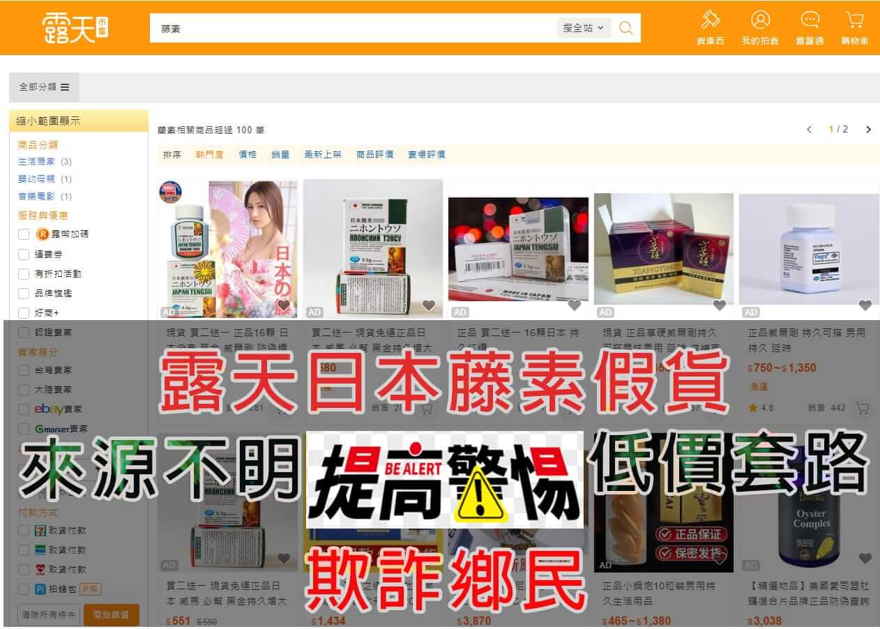 露天日本藤素假貨